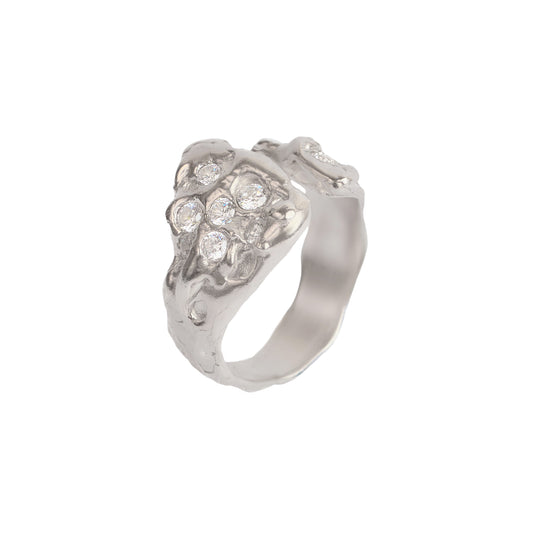 RSPZ09 // Silver monster ring with natural assymetric pearl and dusty pink zirconias