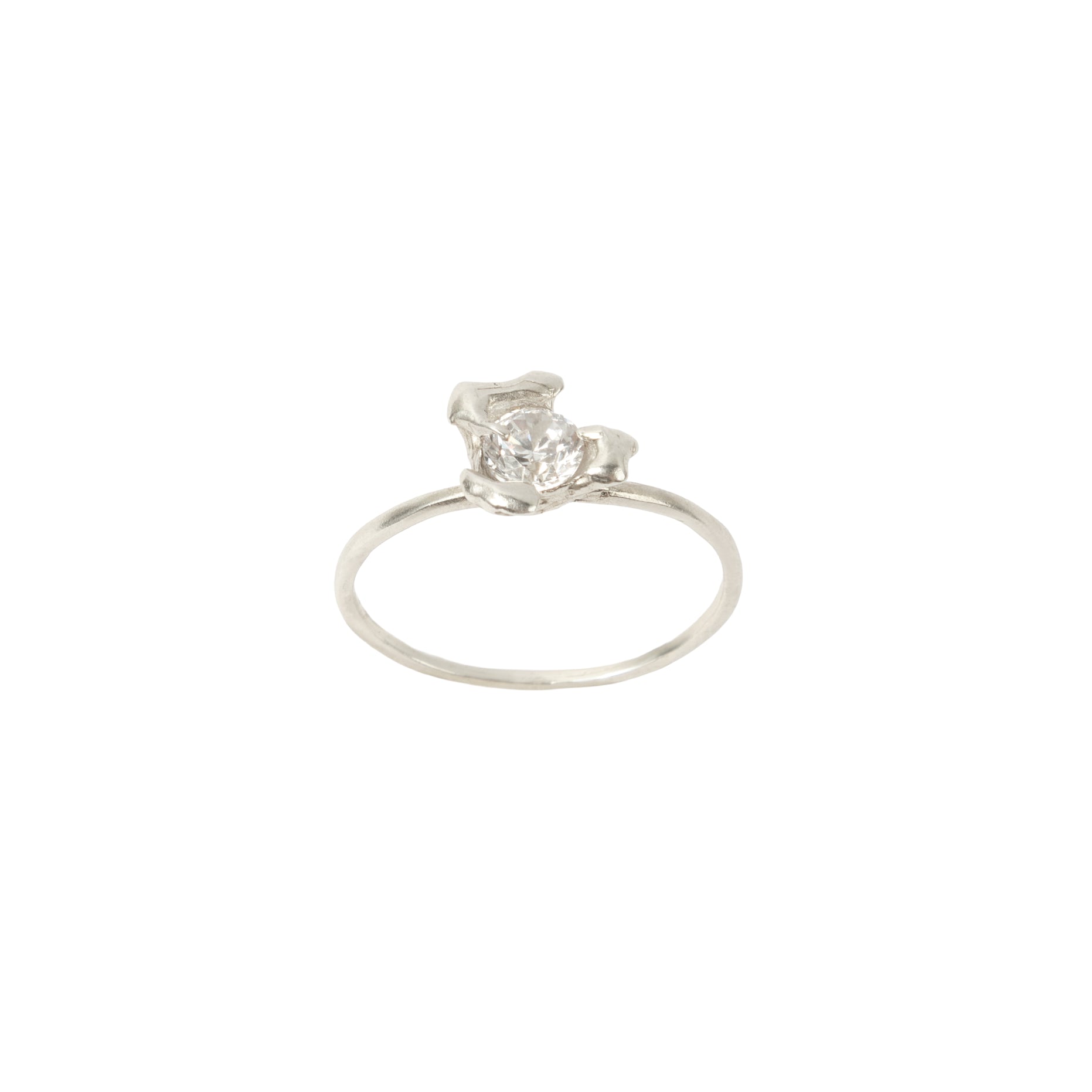 Thin, elegant ring in a shape of little flower holding a zirconia stone. Can be worn as stacking rings on the same finger. From the SS25 collection