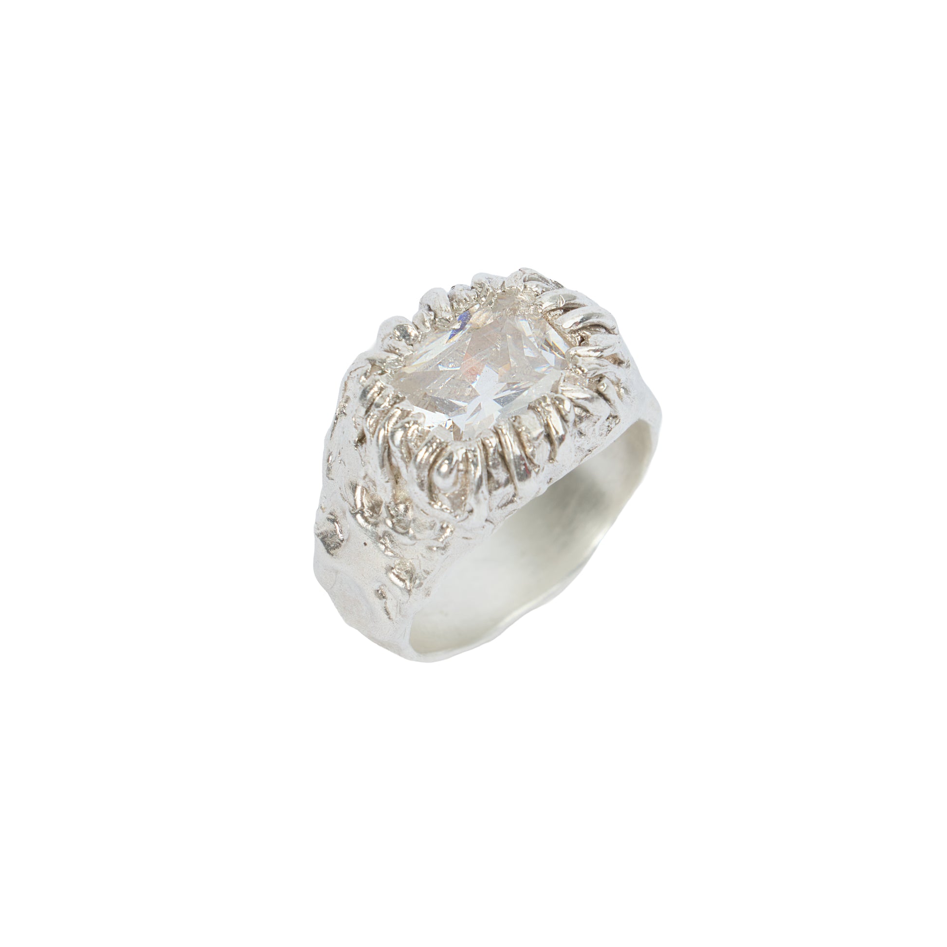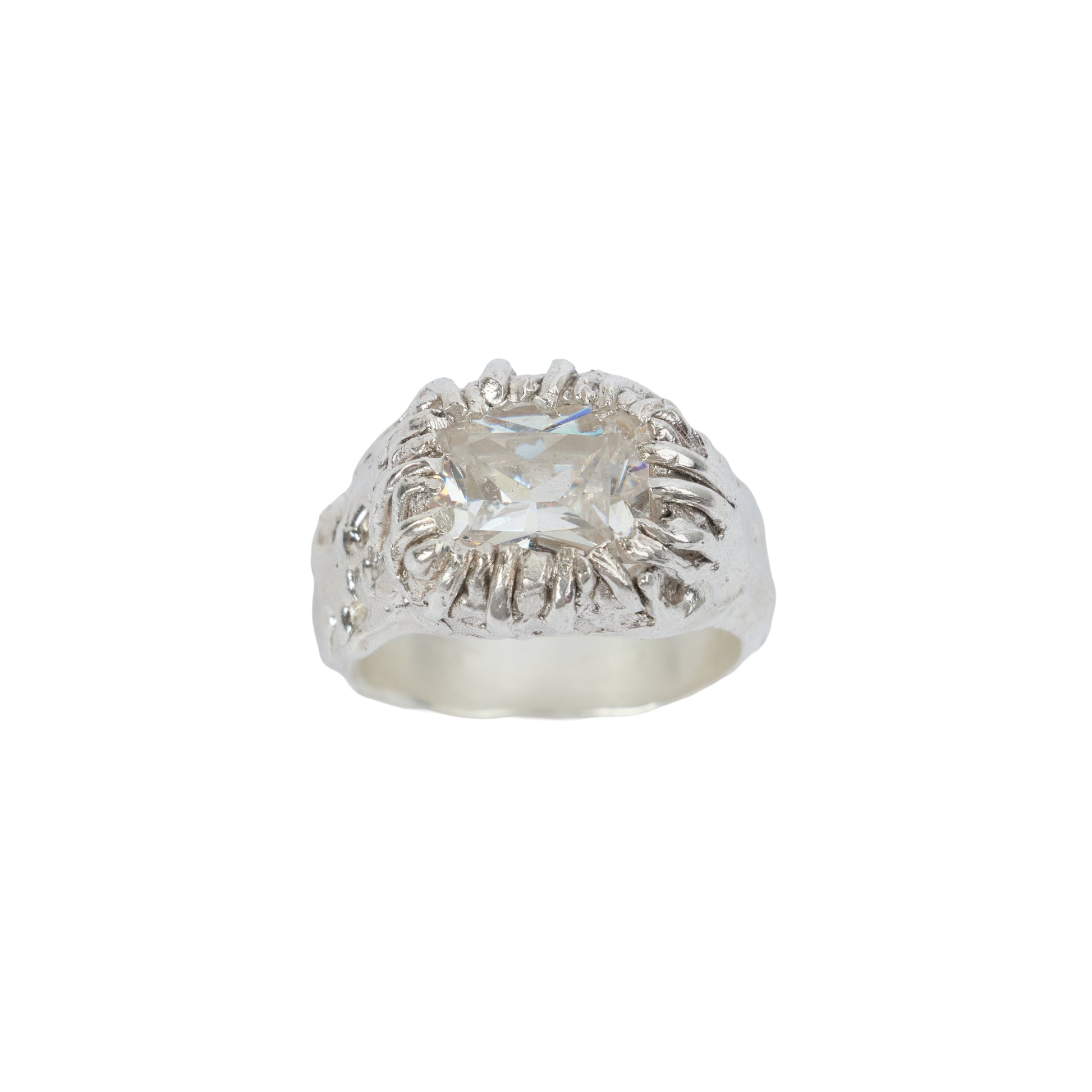 Unisex silver signet ring, featuring dozens of tentacles holding a rectangular rock. New revision of our good old RSST25 for the SS25 collection.